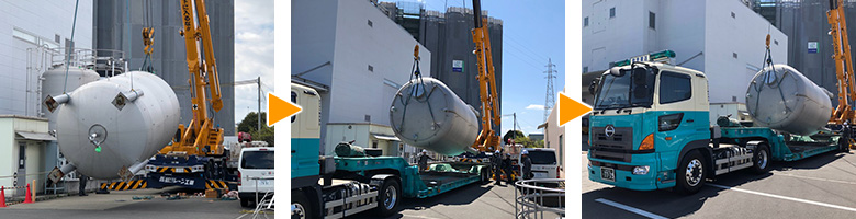 小型船など特殊輸送で磨いた高い技術力とノウハウであらゆるニーズに対応! 10t低床平や幅広低床(299 タンク台車)、フラットや平トレを用いた輸送にも対応が可能